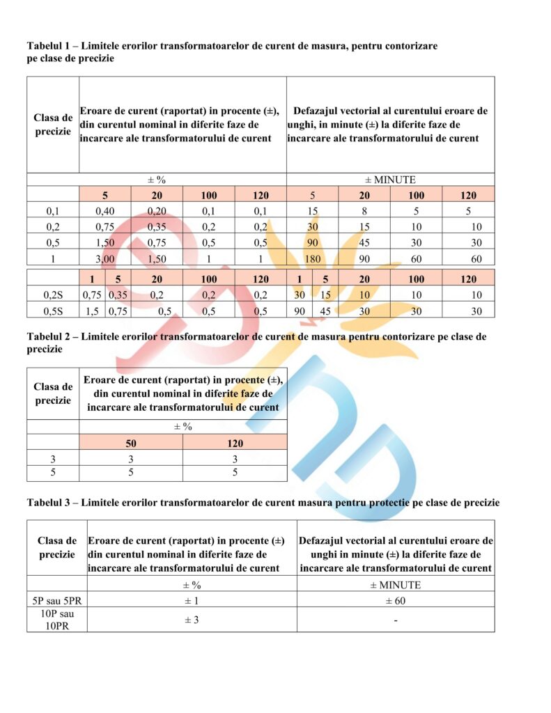 5. Tabele cu clasele de precizie ale transformatorilor de masura curent