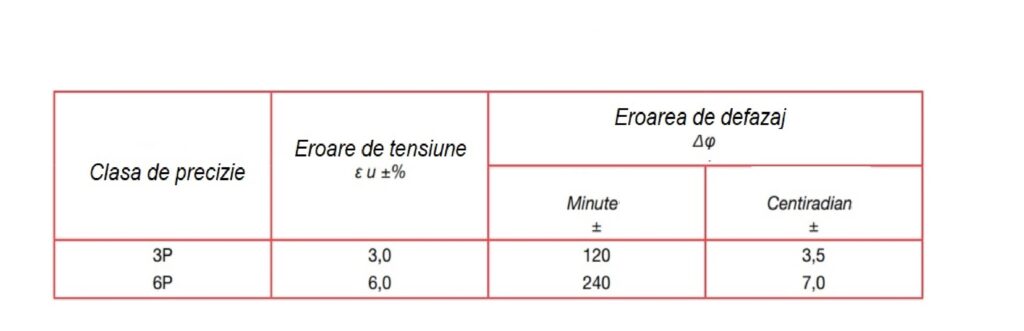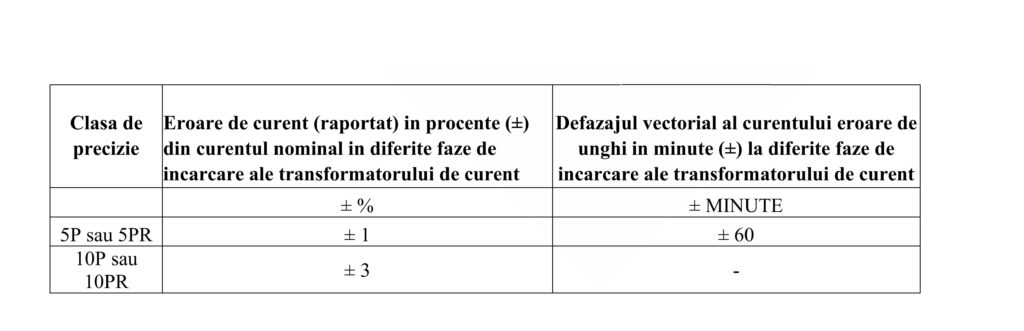 3. Tabel cu clasele de precizie la transformatori de masura curent pentru protectie