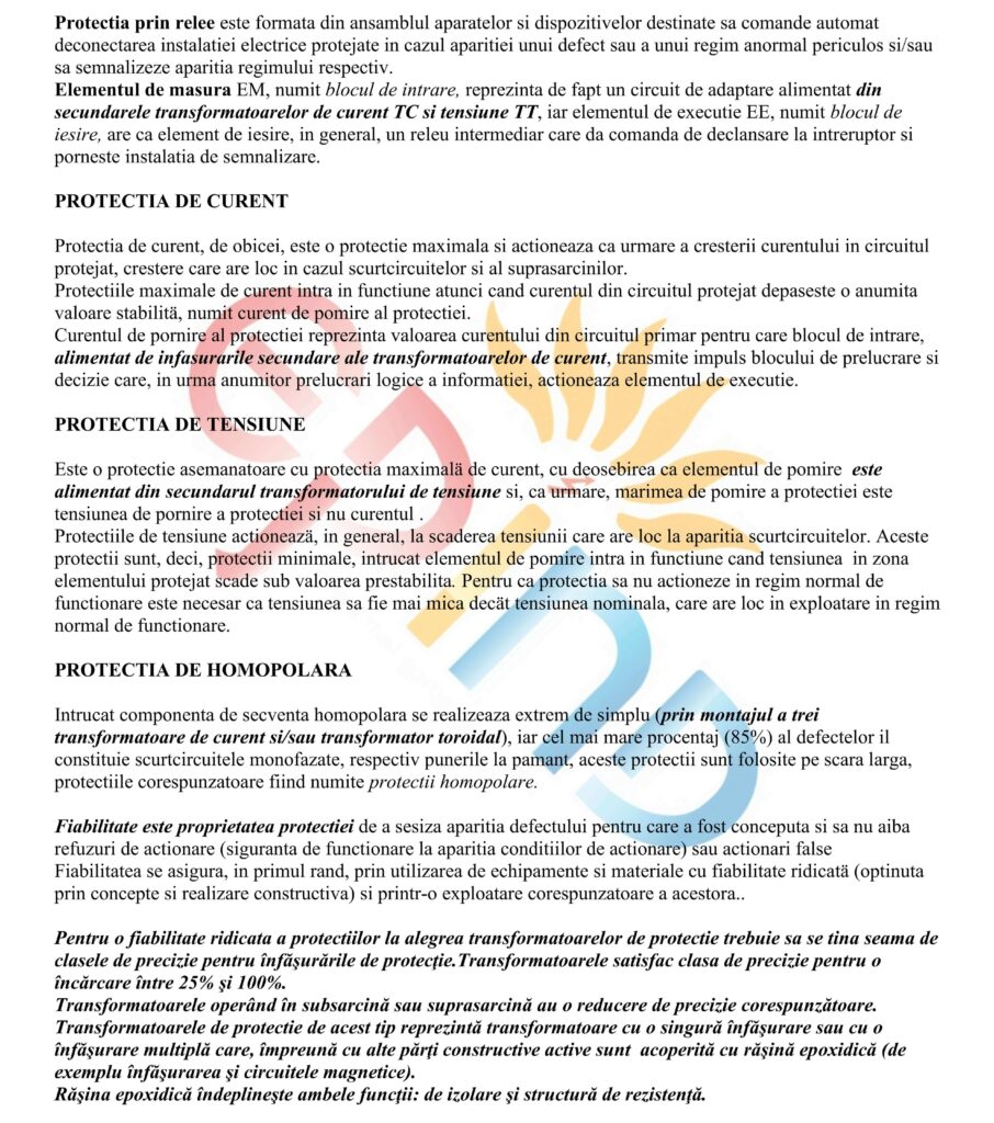 1. Protectia prin relee si instrumentele de masura necesare (transformatoare de masura pentru protectie)